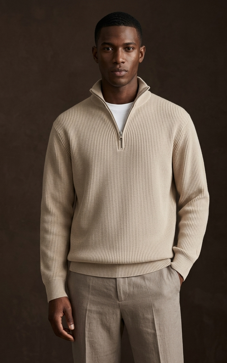 Ez a pulóver a klasszikus stílus modern csavarral való megtestesítője, ideális azok számára, akik kényelmet keresnek anélkül, hogy lemondanának a gondosan ápolt megjelenésről. A függőleges bordás kötésű kialakításnak köszönhetően ez a darab gazdag textúrával és laza, a testhez tökéletesen illeszkedő szabással rendelkezik.