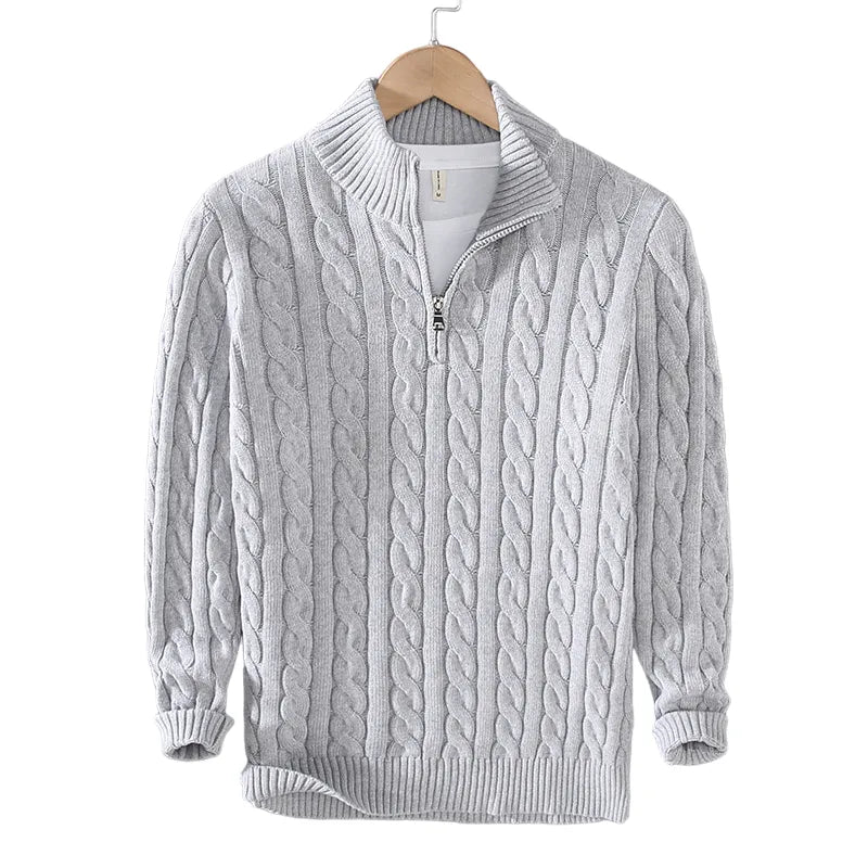 Ez a cipzáras kötött kabát elegáns és időtálló kialakításával tűnik ki, tökéletes azok számára, akik kényelmet keresnek, anélkül, hogy lemondanának a stílusról. Klasszikus fonott mintázatú kötött anyagból készült, könnyen kombinálható különböző ruhadarabokkal, a hétköznapi nadrágoktól a kifinomultabb megjelenésig.